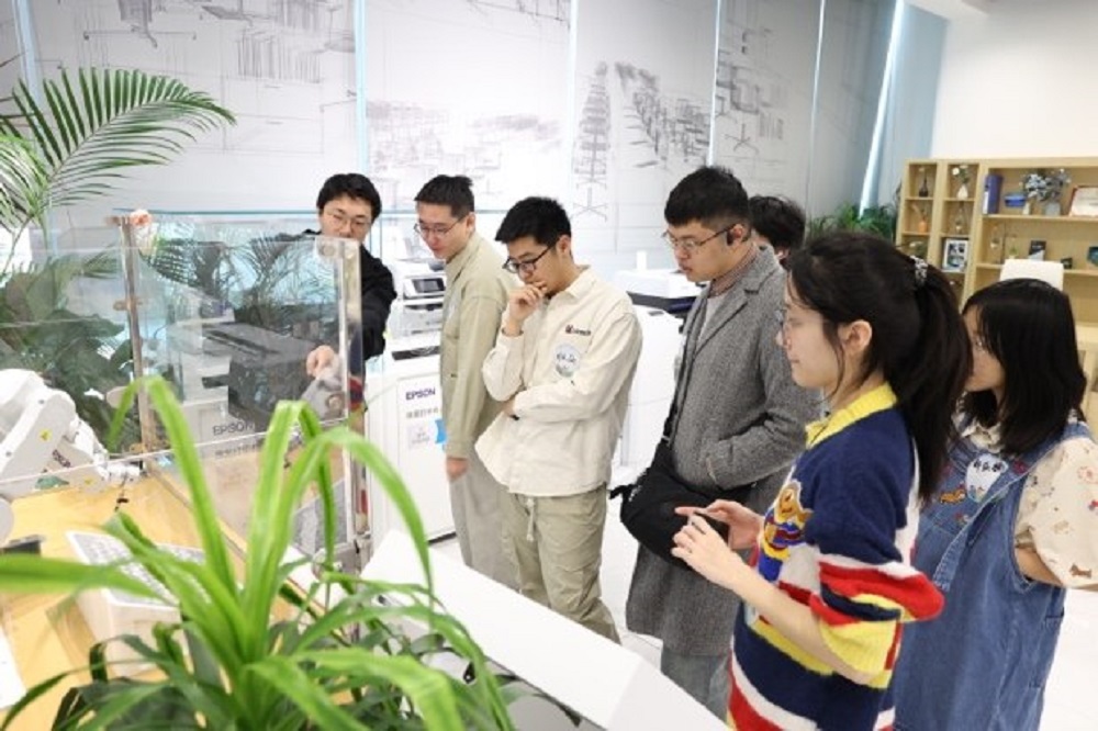 本届训练营,爱普生邀请同学们走进爱普生(中国)有限公司北京总部,在展厅中更全面地参观与体验全线产品及方案:通过“爱萝卜打印”输出“人生四格照”,了解爱普生喷墨打印技术无需加热的绿色文印优势;触摸欣赏数码印花服饰与家居装饰品,感受其背后的环保性能与个性化定制价值;与爱普生机器人对弈象棋,体验前沿智能化技术方案;借助爱普生高亮激光工程投影机,沉浸式感受文旅方案的魅力……这些丰富多元的创新方案,以独特的绿色价值,为同学们带来了连连惊喜。